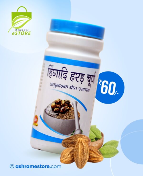 - लगातार सात दिनों तक गोमूत्र में हरड़ को भिगोने के बाद से सुखाकर फिर उसका चूर्ण करके उसमें हींग, अजवायन, सेंधा नमक, इलायची आदि मिलाकर बनाये गये चूर्ण को हिंगादि हरड़ चूर्ण कहते हैं ।